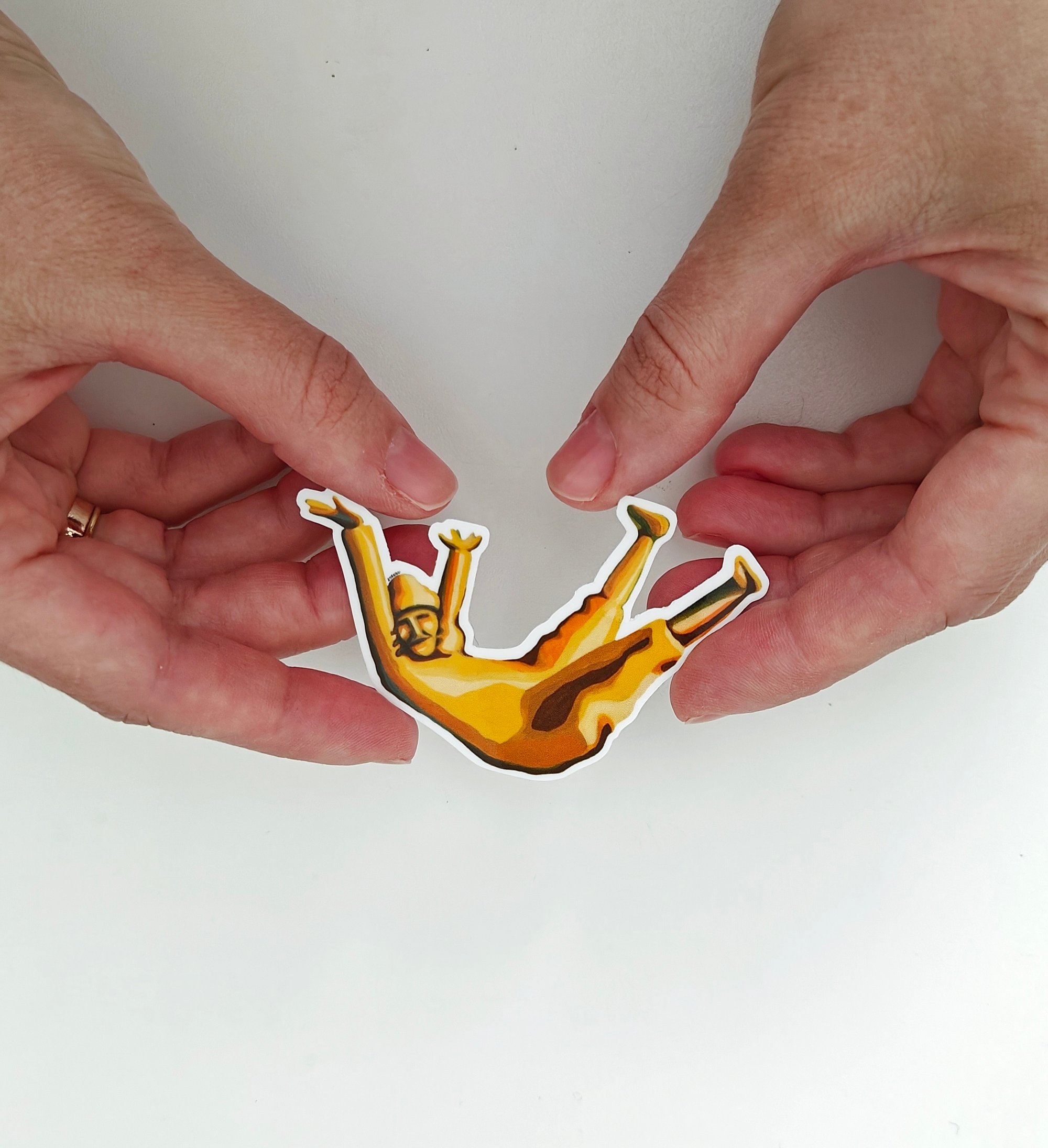 The original artwork was hand-painted with acrylic on canvas paper, bringing the character and movement of Opsinjoorke to life before being transformed into a vibrant sticker design.