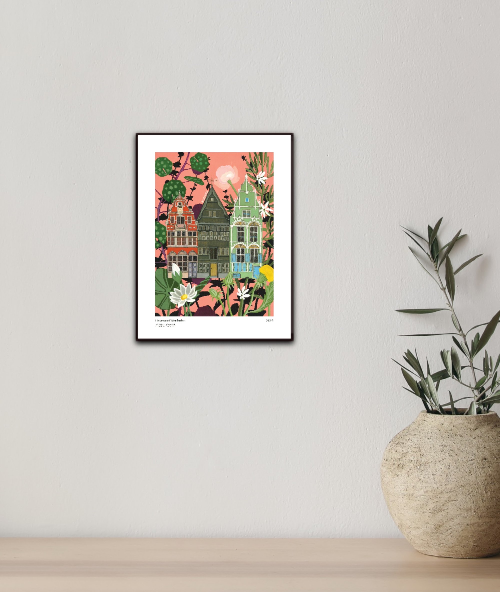 The original artwork was hand-painted with acrylic on canvas paper, capturing both architectural character and botanical energy before being transformed into a high-quality print.